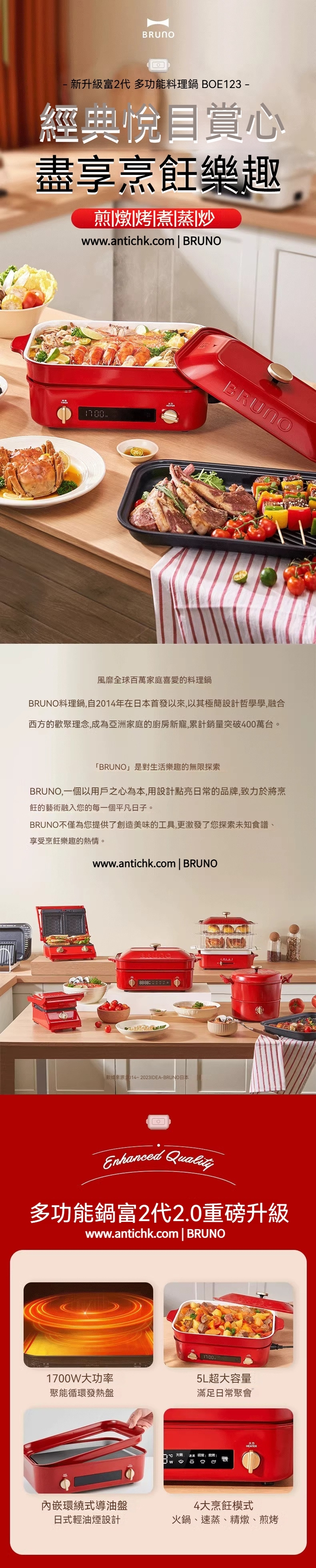 日本 BRUNO 品牌的誕生,透過時尚的商品設計及休閒的態度,徹底改變熱愛聚會、熱愛煮食的人們的生活方式。每一個細節均展現對「多變」與「樂趣」的重視,也逐漸成為今天生活的全新標準。