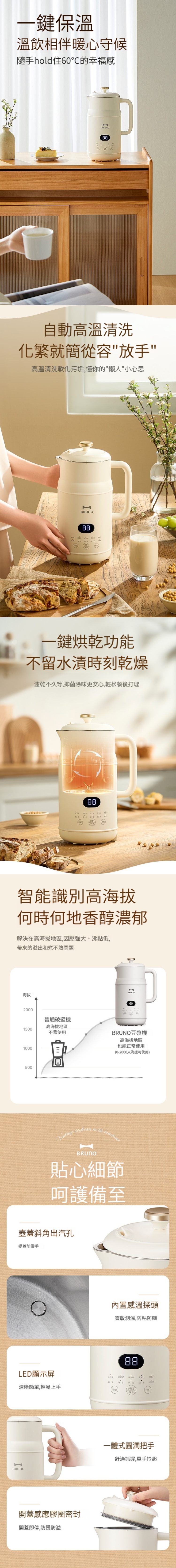 BRUNO豆漿破壁機是一款多功能、高品質的豆漿機,讓您可以輕鬆享受美味健康的飲品,提高生活品質。選擇BRUNO豆漿破壁機,讓您的生活更加健康、方便、省時!