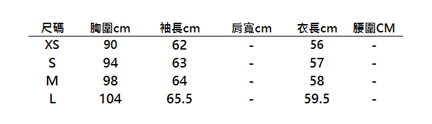* 以上為貨品所有顏色號