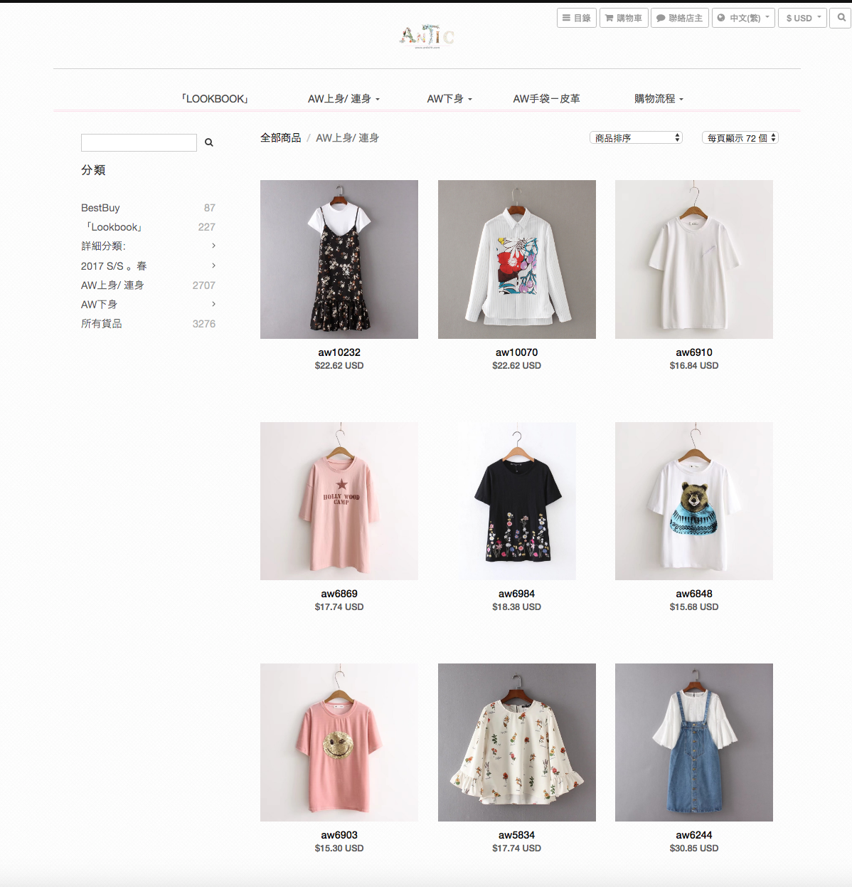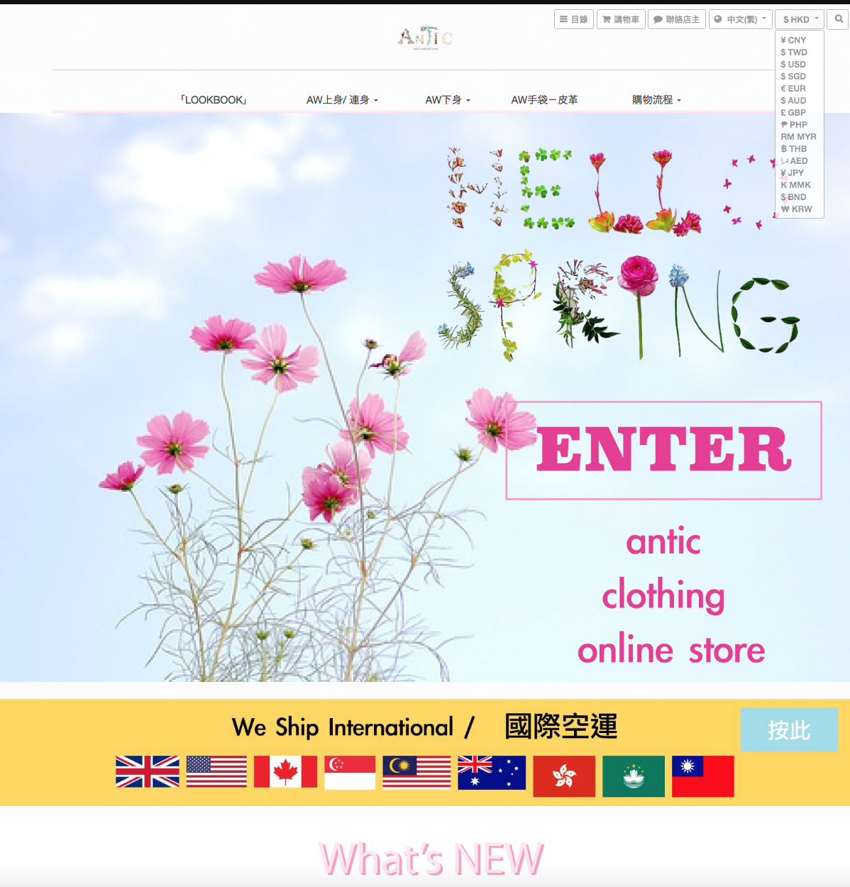 在網頁的右上方有個標籤,可以把網頁內所有貨品轉成你所在地的外幣展示。
