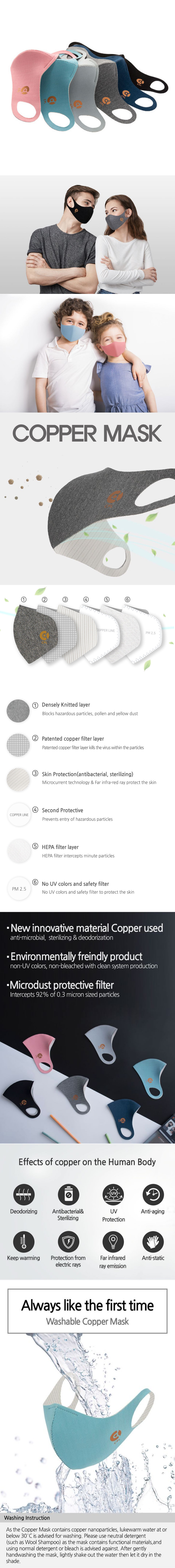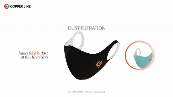 Copper Line是南韓首家公司專門以高科技及專利銅線生產環保產品,具抗菌及消毒功能,減低因哮喘及塵蹣引起的敏感及感染。於韓國製造更獲Korea Certification安全驗證,Copper Line抗菌銅線口罩抗菌達99.9%,VEF達99.9%及PFE達 99.6% 。