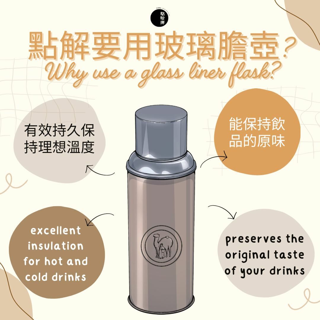 對比坊間的不銹鋼保溫壺, 駱駝牌暖水壺 的賣點就是其真空玻璃內膽的設計,用上雙層厚玻璃作隔熱保溫之用,加上真空結構,保溫程度更高,最長可保溫至整天!