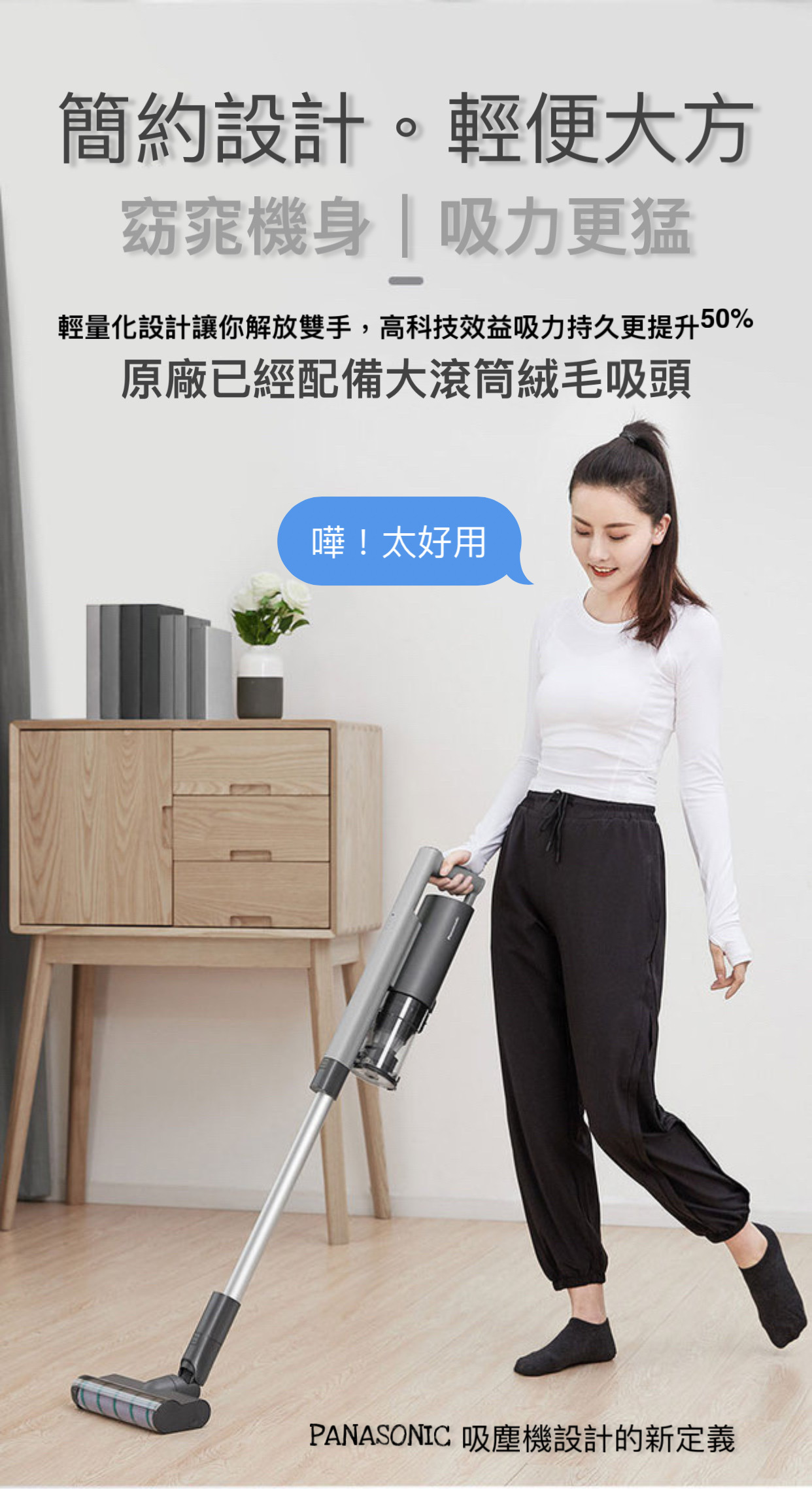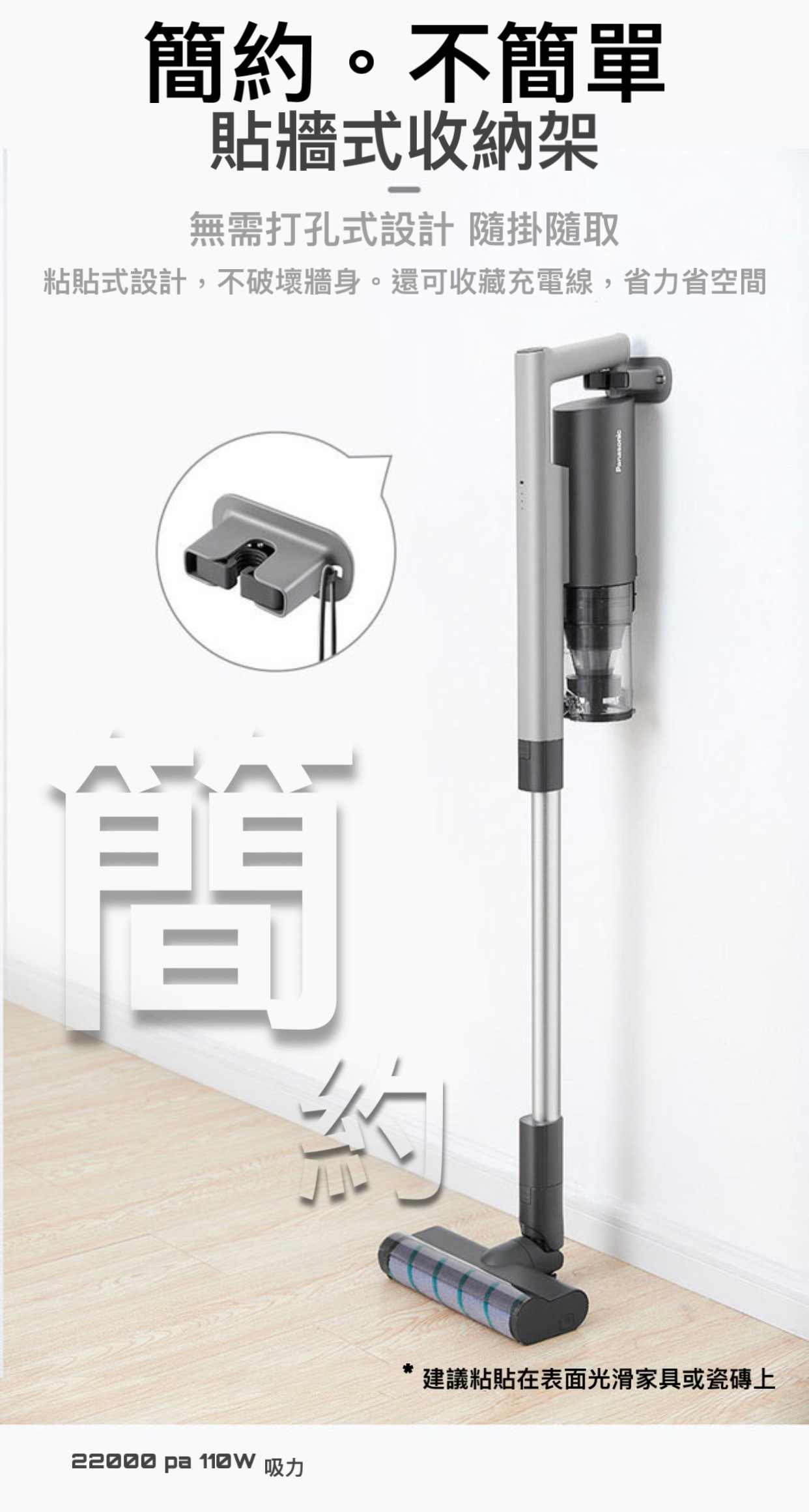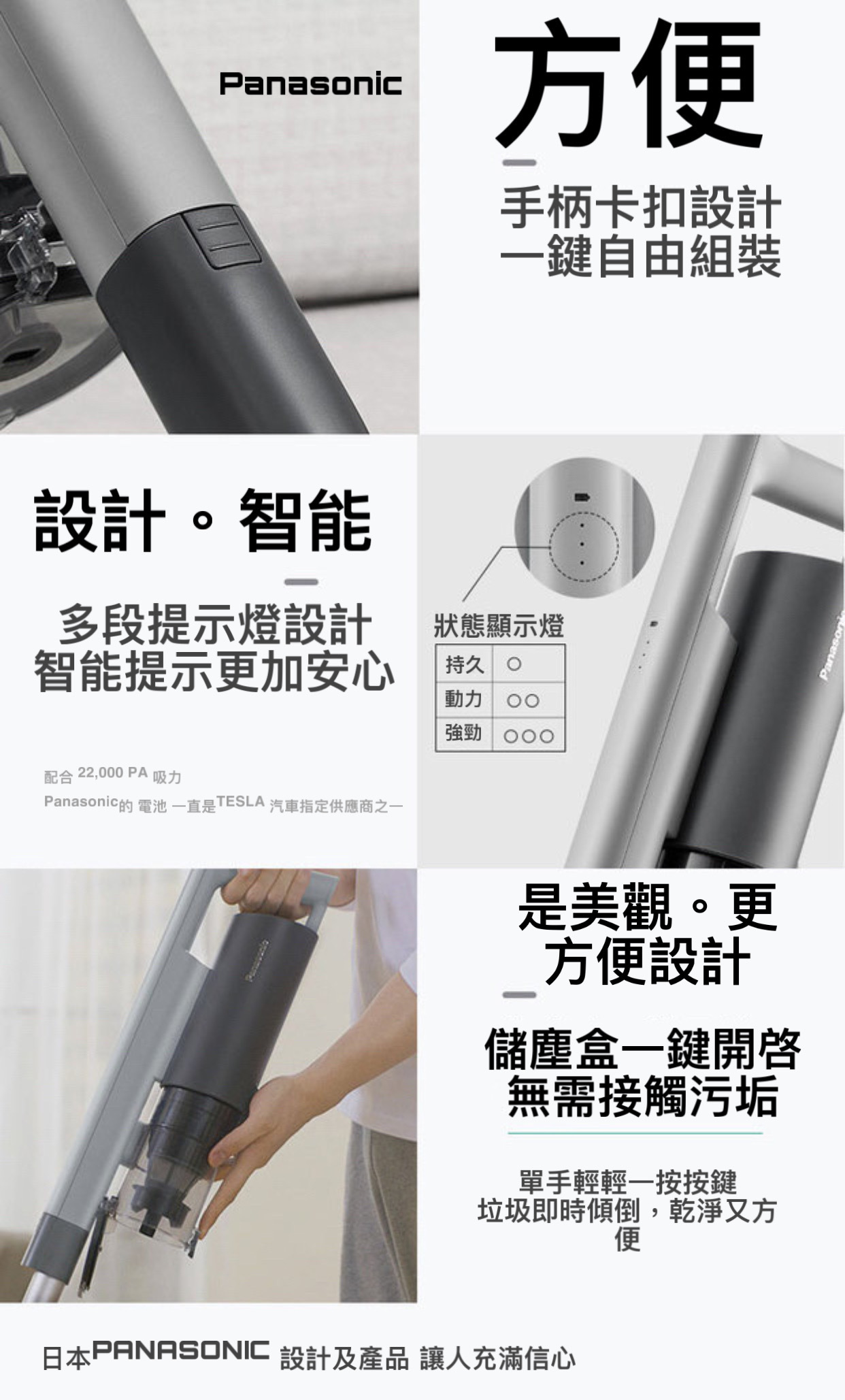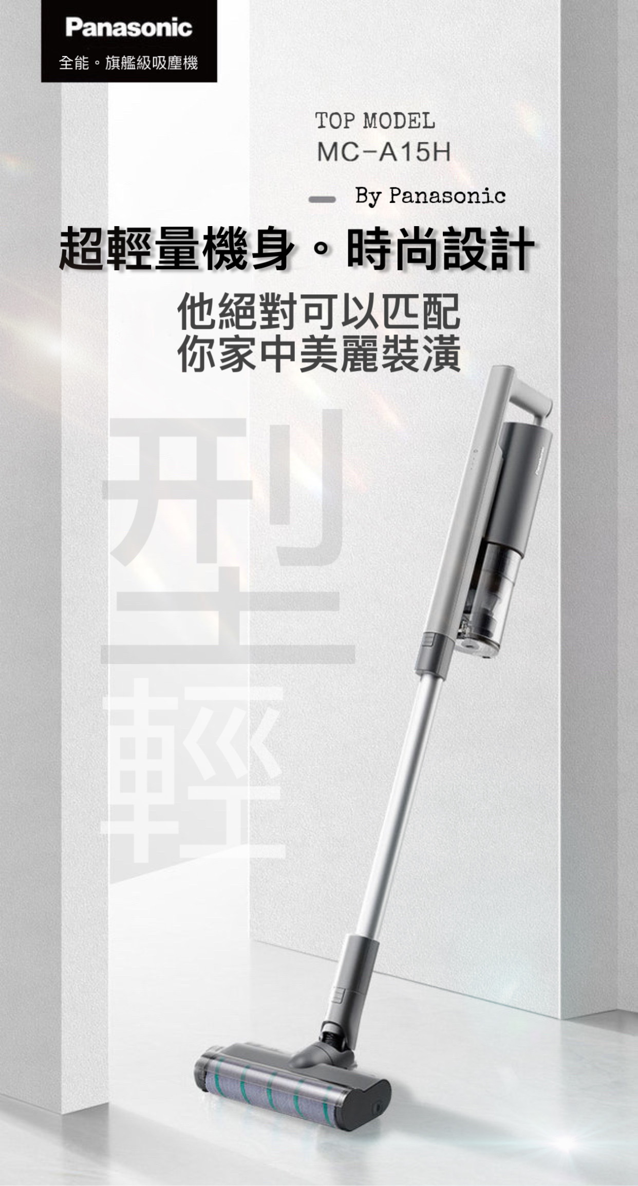 日本 Panasonic 松下旗艦級A 15手提吸塵機採用簡約機身,續航能力45 分鐘。