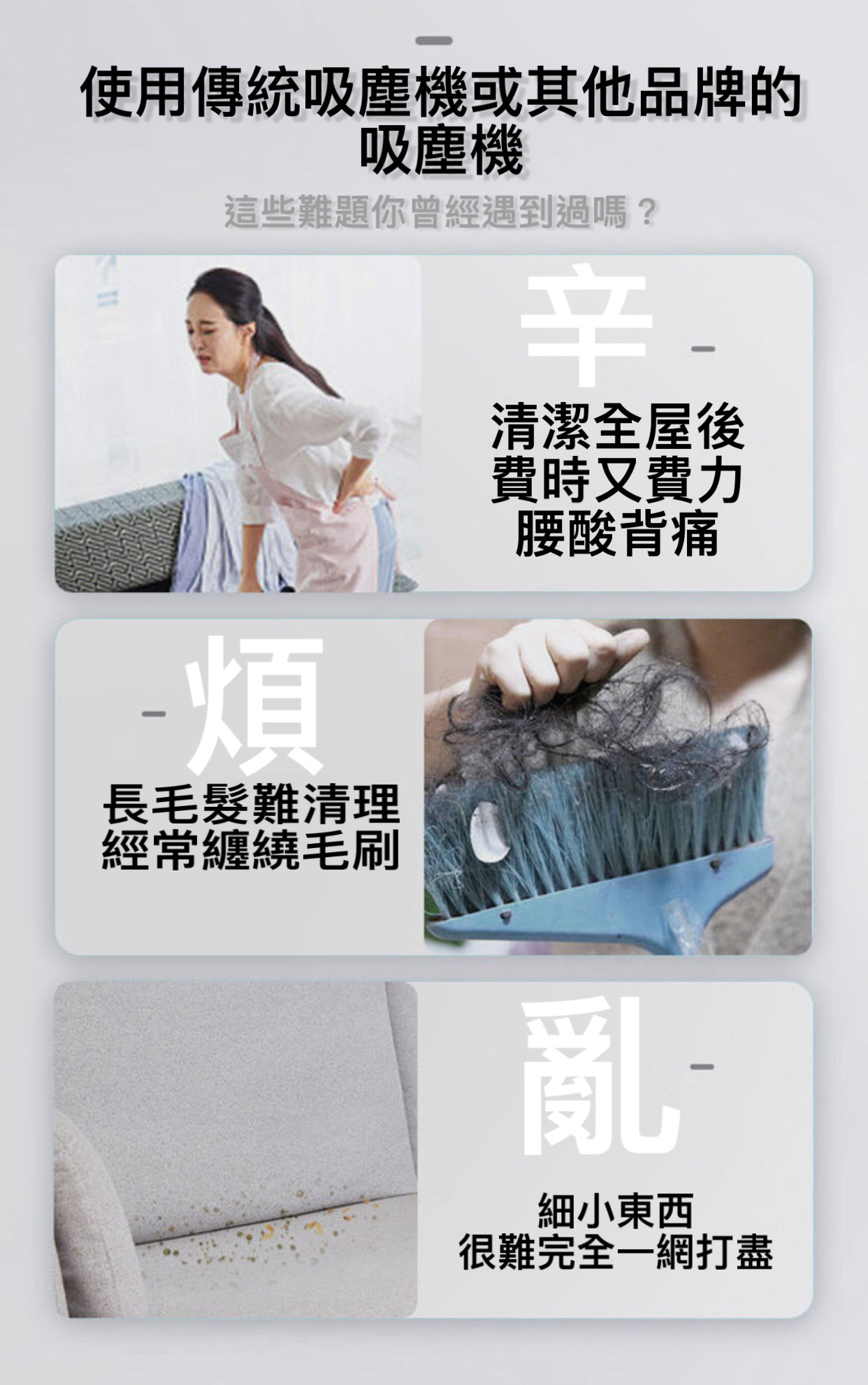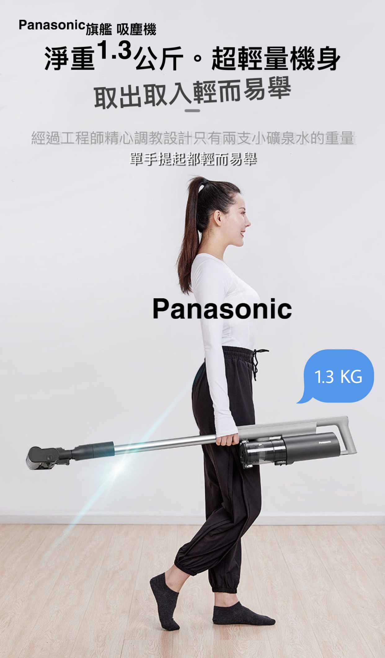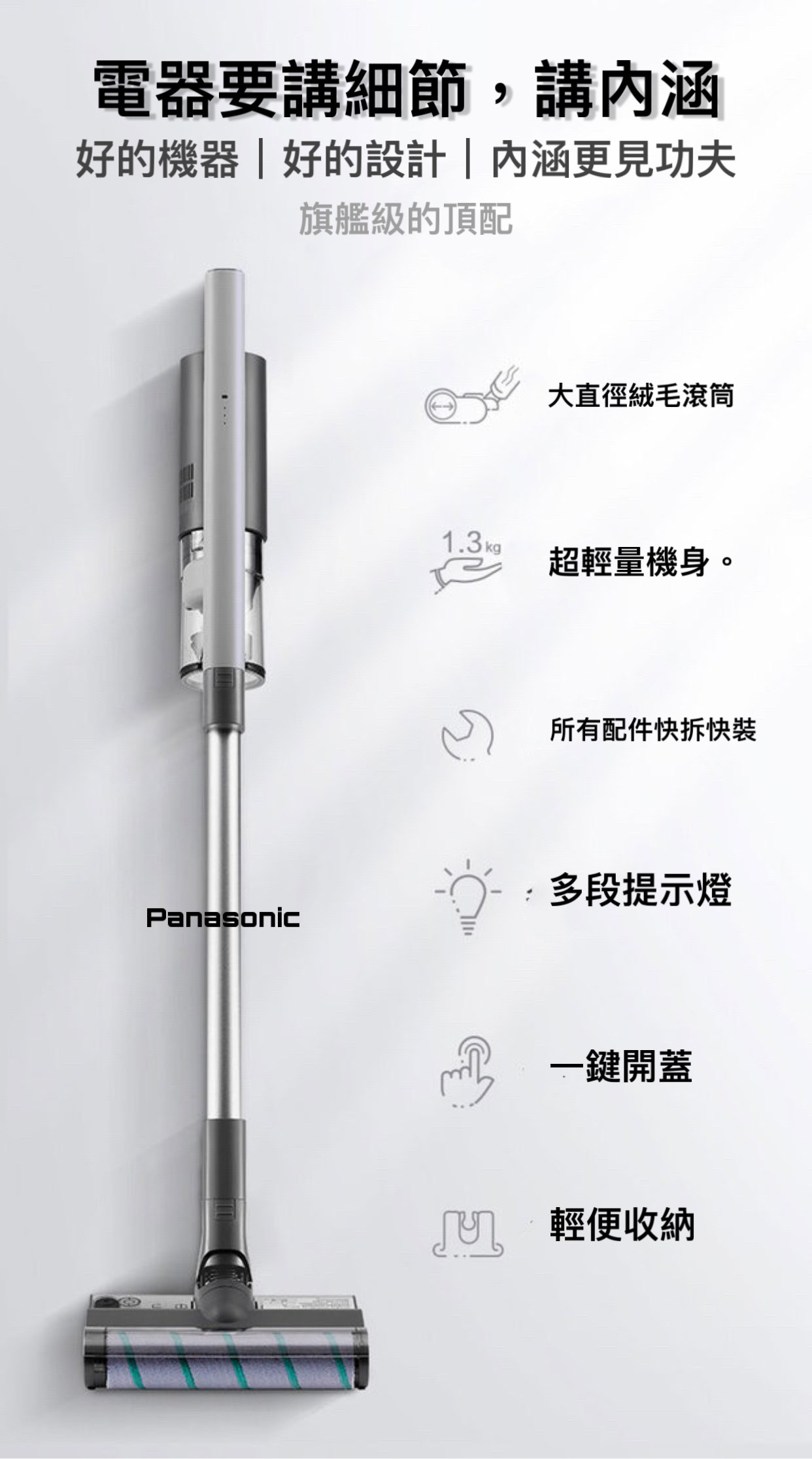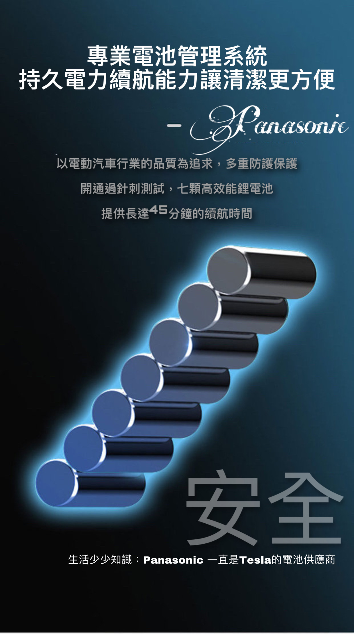 人體工學加上1.3 KG 機身淨重量該你輕鬆自在打掃每個角落,7顆鋰電輕鬆增加續航力。