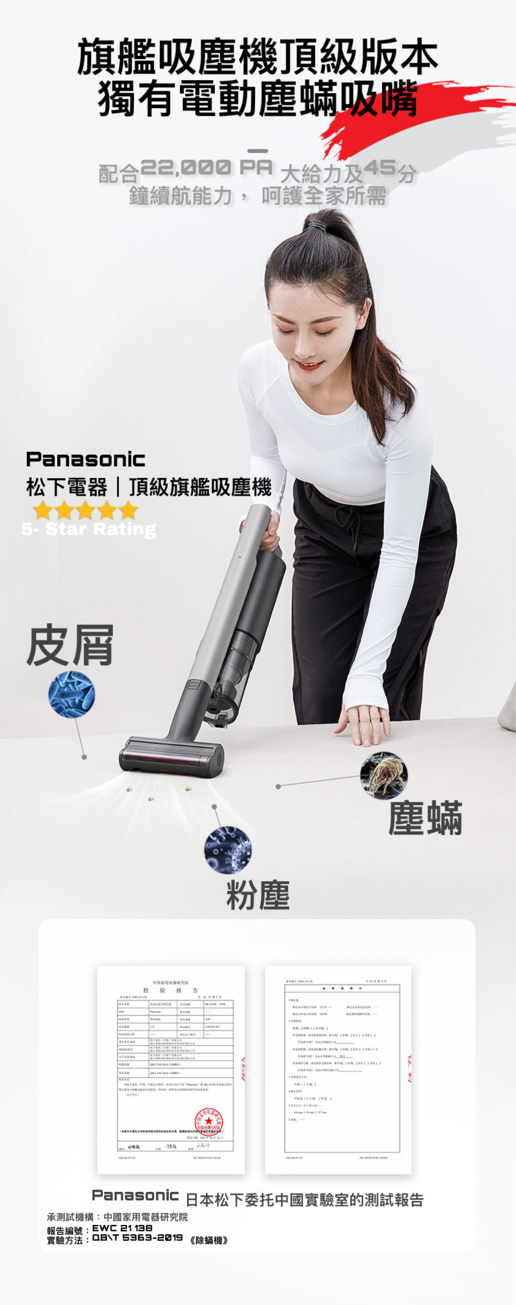 全新日本松下吸塵器A15H手持無線吸塵器標配除螨頭 小巧輕便多種可更換吸頭,