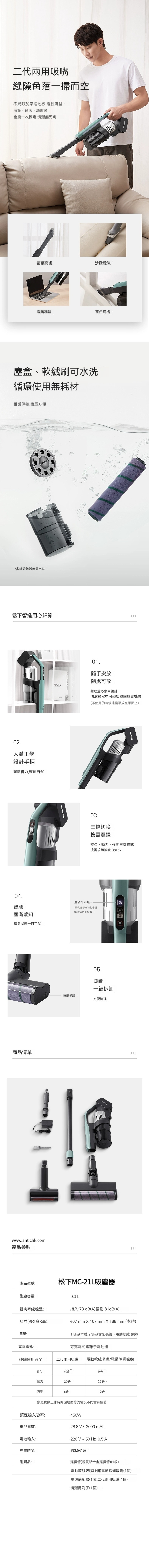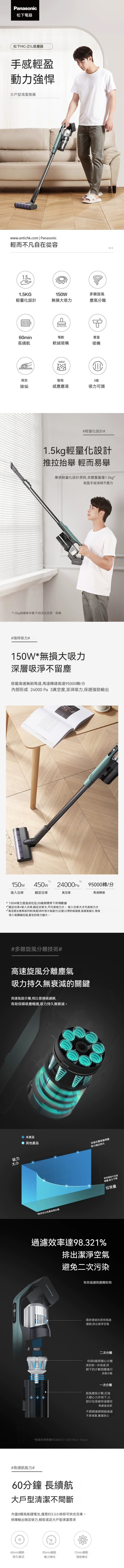 總結來說,全新的日本Panasonic手提吸塵機結合獨特外型、輕盈設計、強大的吸力和持久的續航力,為您提供出色的清潔體驗。無論是家庭使用還是旅行使用,這款吸塵機都是您理想的選擇。