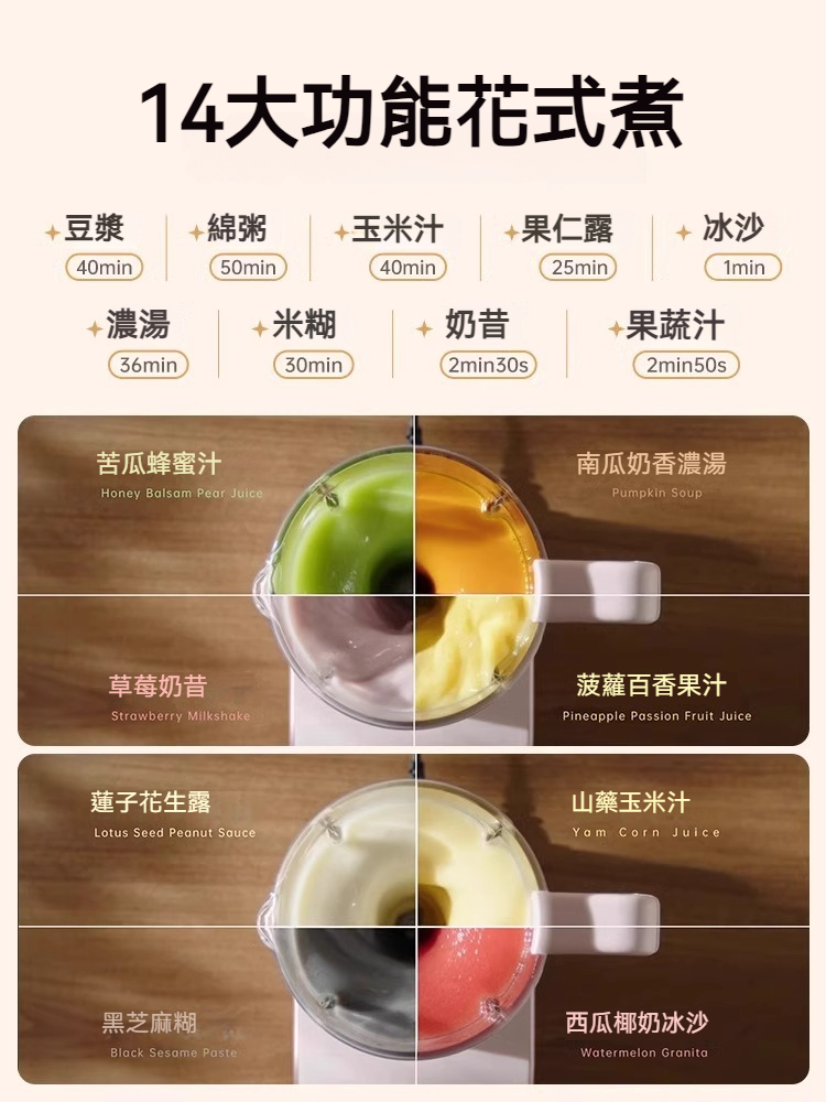 1.5L大容量一壺豆漿全家齊享。12小時預約投豆,高溫自潔除菌更健康,環保材質。