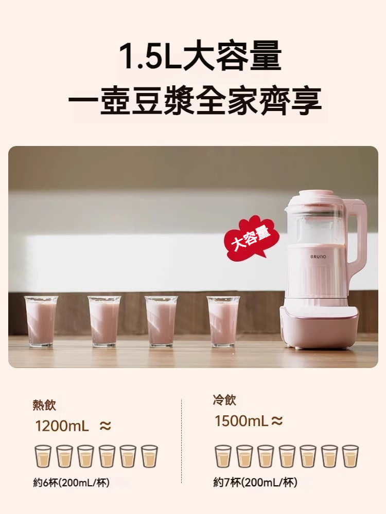 全新 日本 BRUNO 多功能靜音小型迷你全自動奶壺豆漿機破壁機家用 1600W|平行進口 - 國行 ( 220 V ) - 發掘餐桌的無限可能
