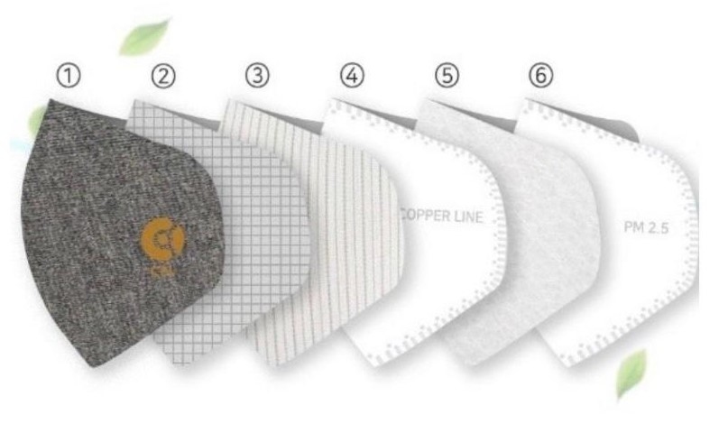 COPPER LINE 抗菌銅線重用口罩 六層防護技術,加強保護。